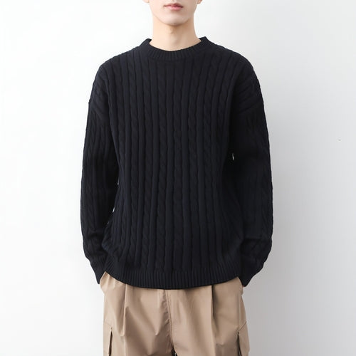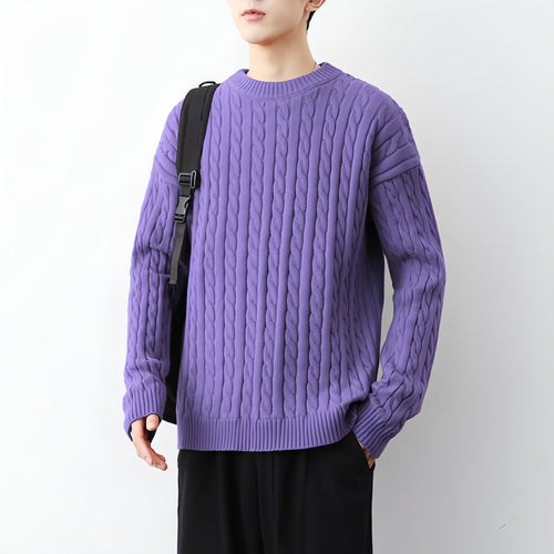 Elevate your winter wardrobe with our Men's Thick Solid Color Loose Round Neck Twisted Sweater, designed for both warmth and style. This sweater combines comfort and contemporary fashion, making it an essential piece for the modern man.