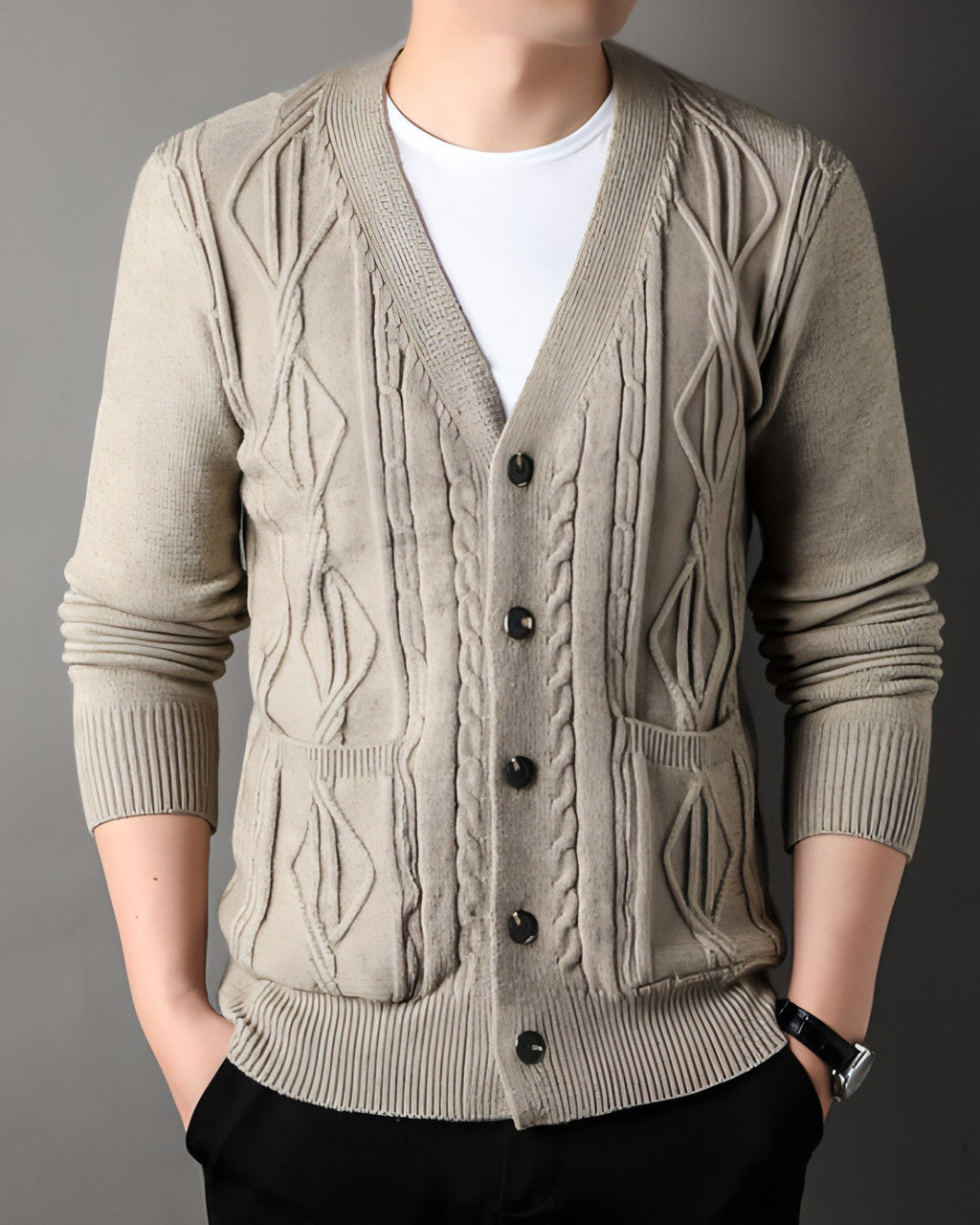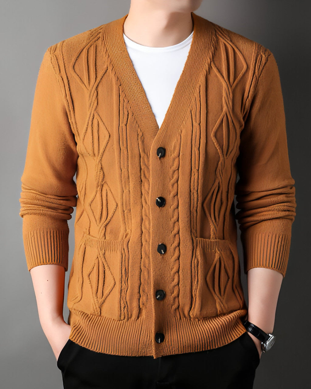 Elevate your wardrobe with our Knitted Cardigan Rhombus Loose Casual Sweater Coat for Men, a perfect blend of comfort, style, and versatility. Crafted from high-quality knitted fabric, this cardigan features a unique rhombus pattern that adds a touch of sophistication to your casual look.